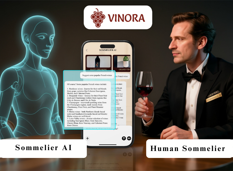 The perfect sommelier is knowledgeable, always available, and knows your taste. Now, that’s possible with Vinora’s Sommelier AI.